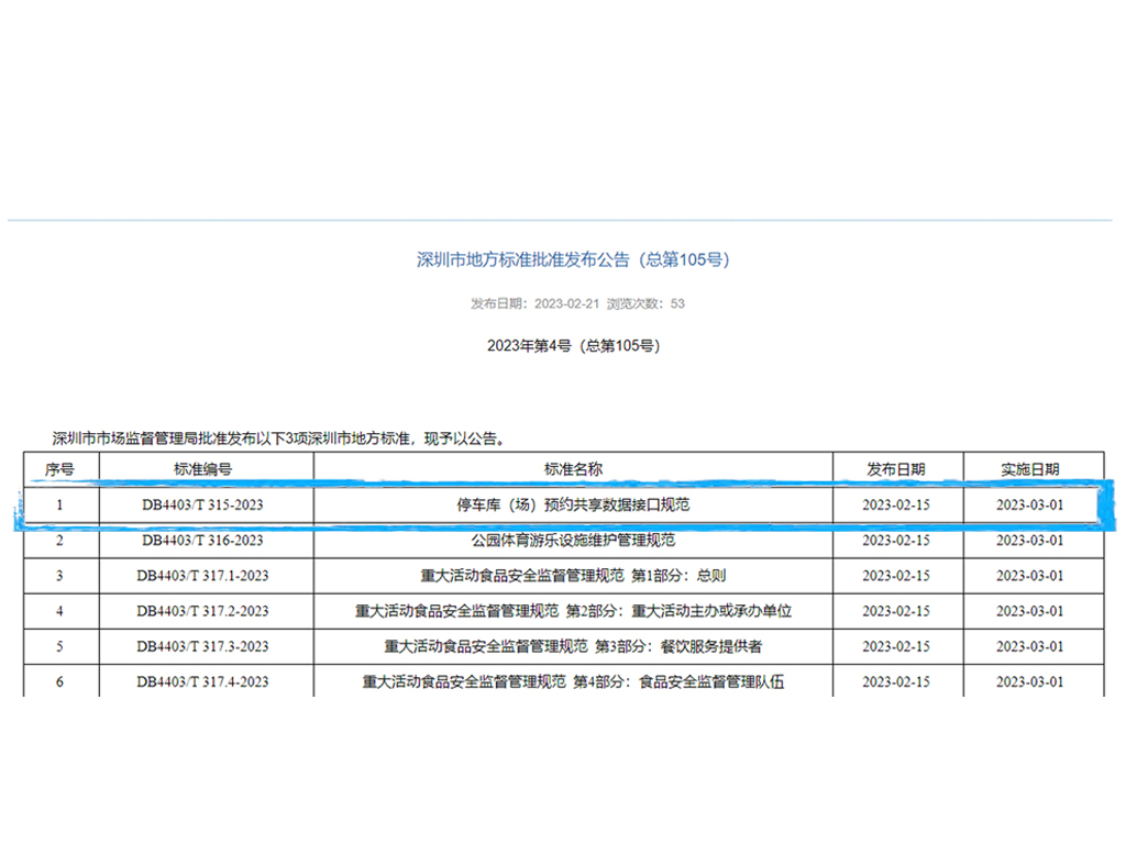 信路通參編的深圳市地方標準《停車庫(場)預約共享數(shù)據(jù)接口規(guī)范》正式實施!