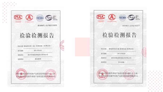 多年來(lái),信路通積極響應(yīng)智慧停車行業(yè)發(fā)展趨勢(shì)及用戶需求,旗下雙目、雙槍、視頻樁、小黃蜂、道閘等軟硬件產(chǎn)品均送至公安部權(quán)威檢測(cè)機(jī)構(gòu)并相繼順利通過(guò)檢測(cè),獲得相關(guān)認(rèn)證證書。